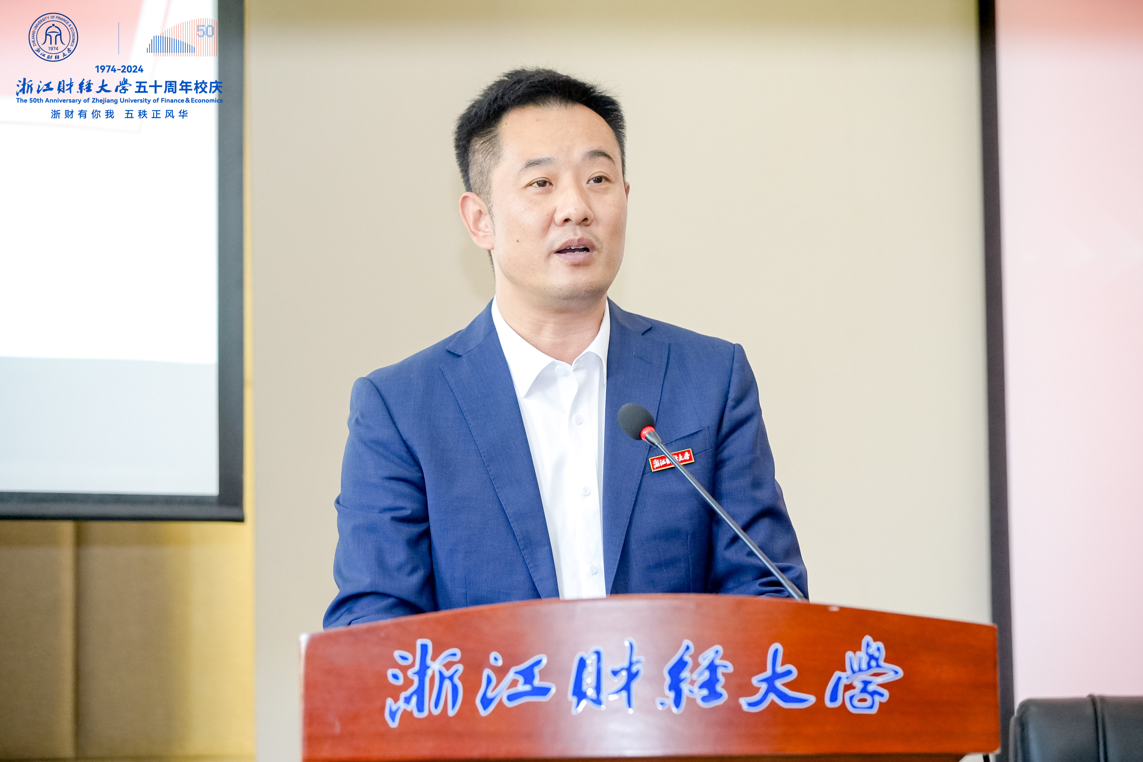 接着,浙江盈阳资产管理有限公司董事、副总经理陈智杰讲话。他提到,“盈阳金融突出贡献奖”设立的初心是激励教师提高课程教学质量、提升科研与社会建设水平。在广大师生校友的关切和支持下,足球直播线上看