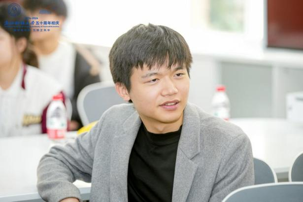 毛泽渊代表获奖学生发言,感谢校友为在校生的学业和职业规划提供了启发和引导,奖项的设立是对母校的深厚情感和对金融学子发展成才的殷切期望。