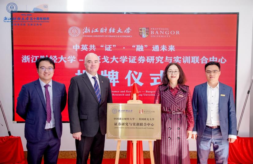 隆重举行。出席仪式的有浙江财经大学副校长郑亚莉、班戈大学副校长Prof Andrew Edwards、浙江益恒投资管理有限公司董事长兼浙江财经大学证券研究与实训中心主任徐冠华(2003届证券投资专业校友)、班戈大学国际合作部主任Sam Jackson-Royle、中南林业科技大学班戈足球直播线上看