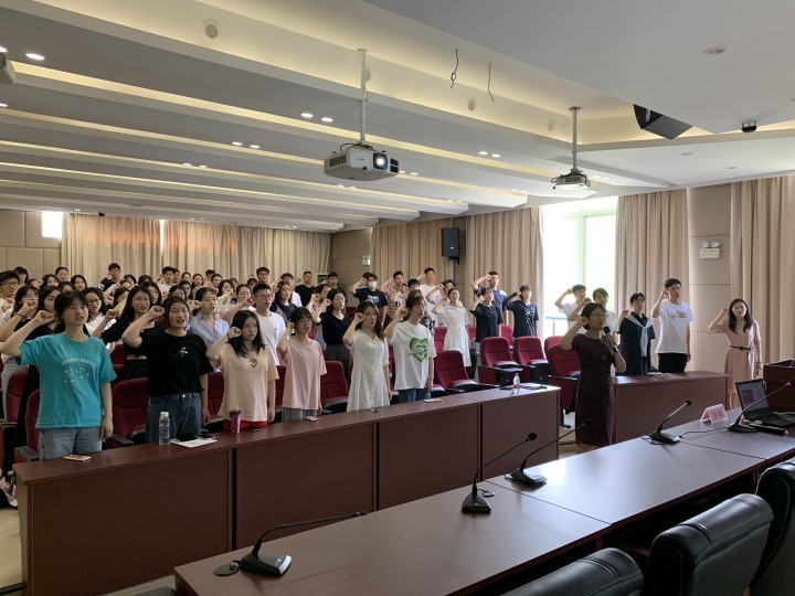紧接着,全体毕业生党员在谢书记的带领下,共同重温入党誓词,期望大家始终保持昂扬的士气、进取的心态和创先争优的精神,以优秀的成绩来践行入党誓词。