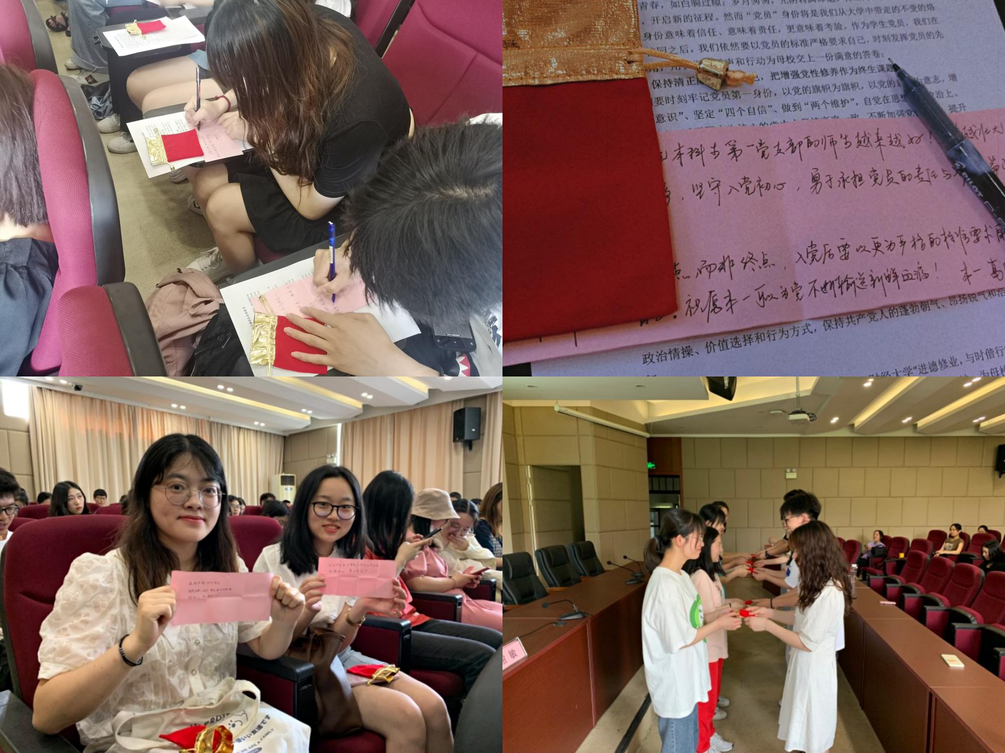 为深入开展“我为群众办实事”实践活动,会上还举行了“传锦囊妙计,授党员经验”锦囊传递仪式。各毕业生党员们亲笔写下自己工作学习中的经验、对学弟学妹们的建议、对支部发展的祝福等,装入锦囊之中,希望支部党员们带着嘱托不忘初心,砥砺前行。