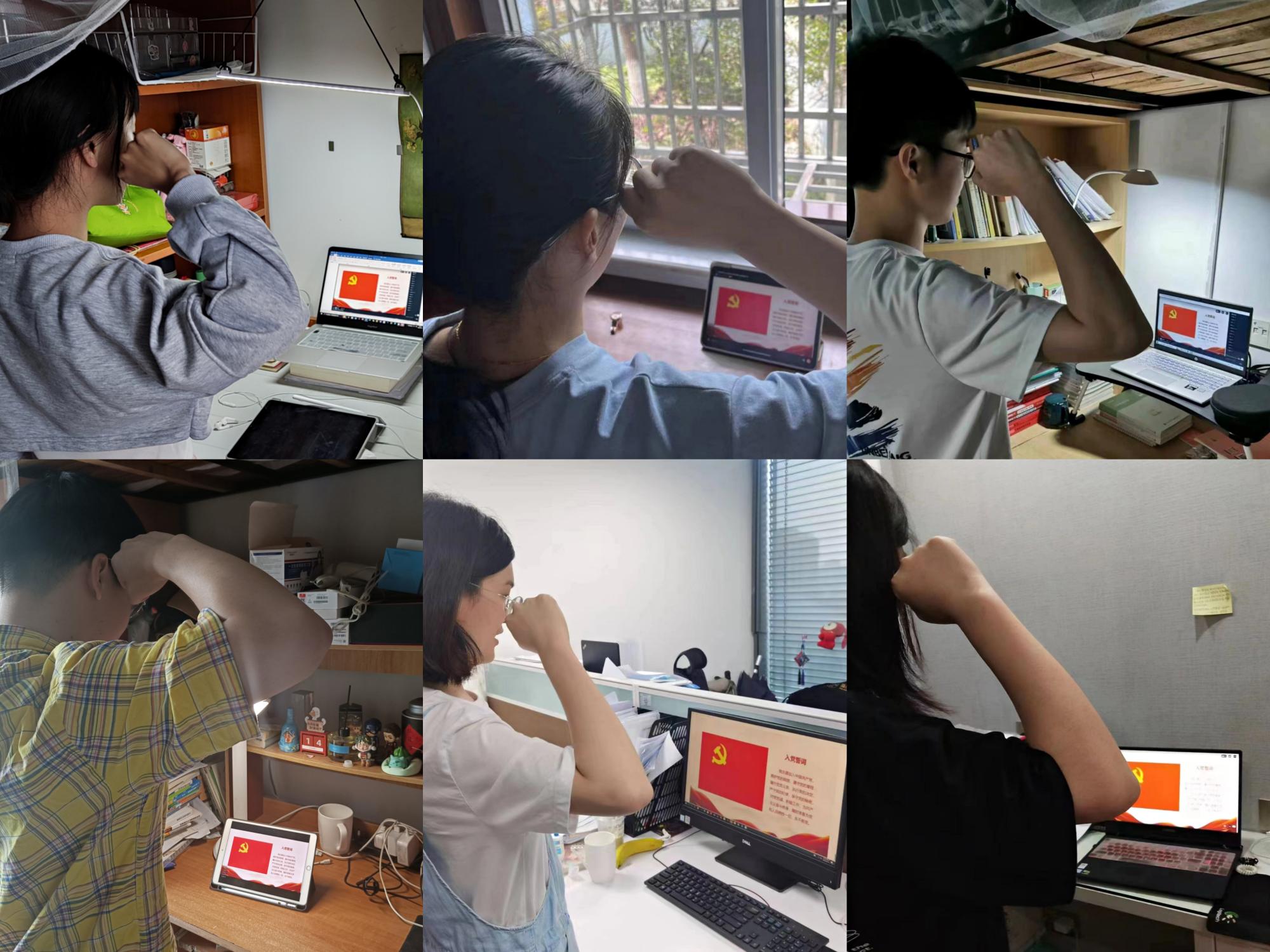 随后,全体毕业生党员举起右手,庄严面向党旗,共同重温入党誓词,每个党员铭记自己当时庄严宣誓的“初心”,时刻以党员的先进性激励自己,保持奋斗精神,不忘初心,牢记使命。